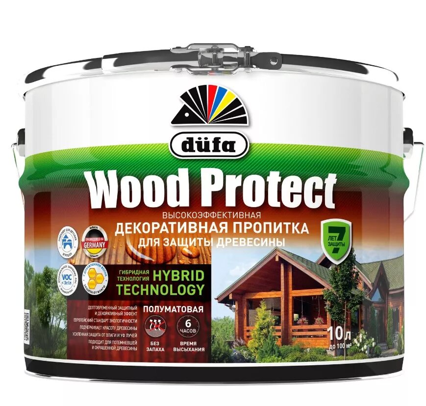 Декоративная высокопрочная пропитка по дереву Dufa Wood Protect Supreme (9л) бесцветный и под колеровку