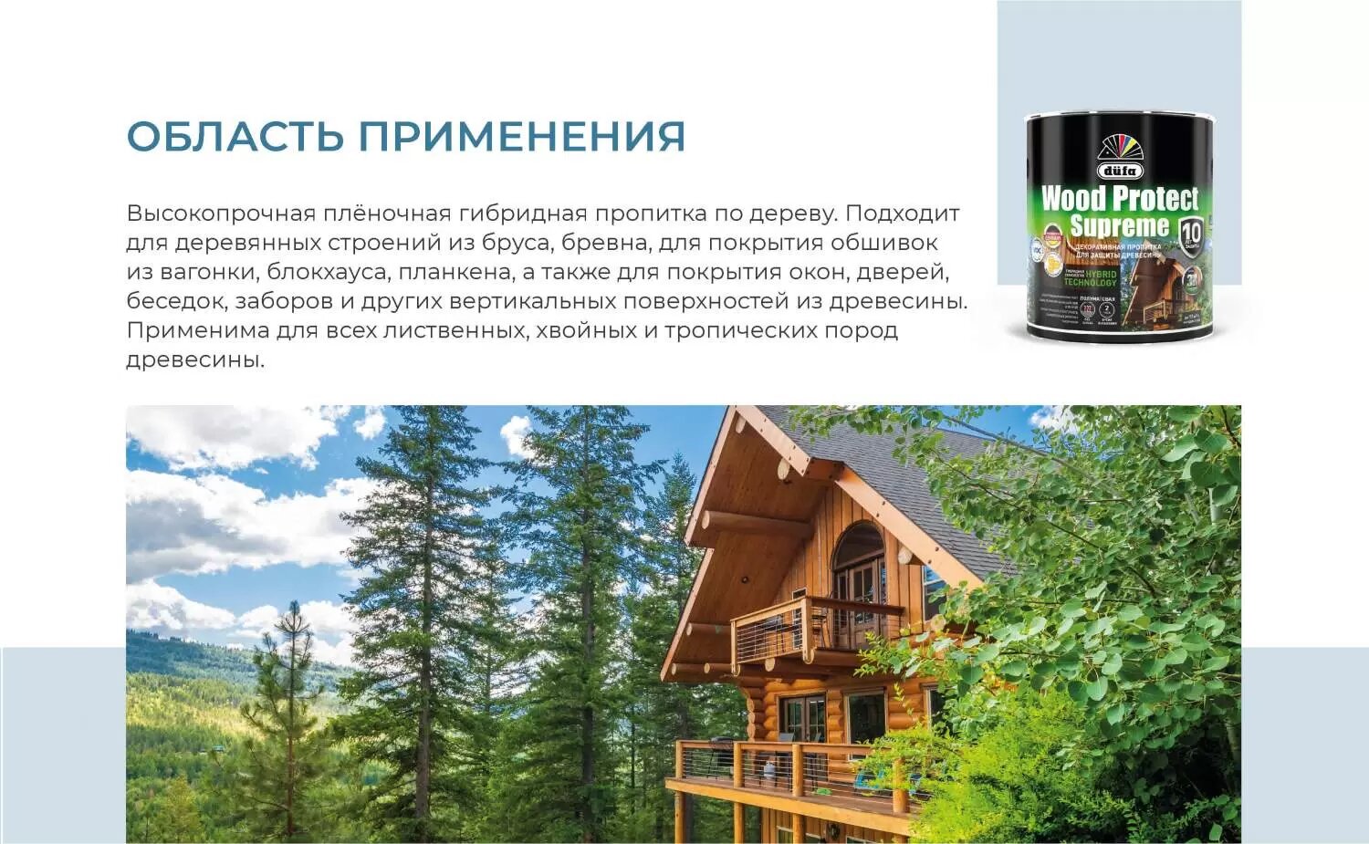 Dufa Пропитка Wood Protect Supreme для защиты древесины, горная сосна 0,75 л