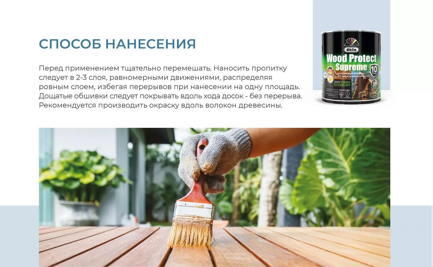 Декоративная высокопрочная пропитка по дереву Dufa Wood Protect Supreme (2,5л) бесцветный и под колеровку