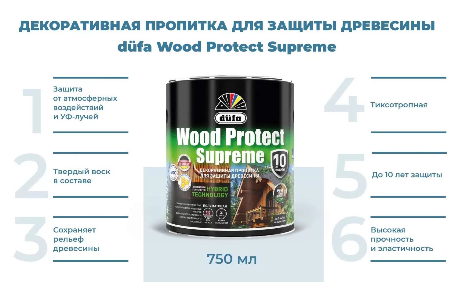 Dufa Пропитка Wood Protect Supreme для защиты древесины, сибирская лиственница 0,75 л