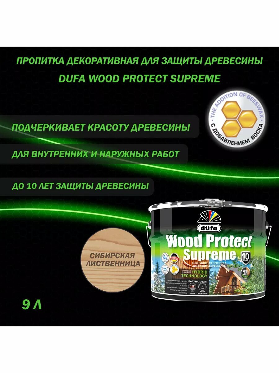 Пропитка декоративная для защиты древесины Dufa Wood Protect Supreme (9 л) сибирская лиственница