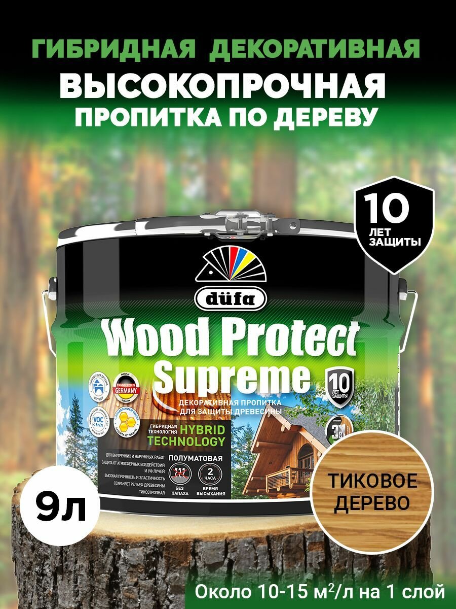 Пропитка декоративная для защиты древесины Dufa Wood Protect Supreme (9 л) тиковое дерево