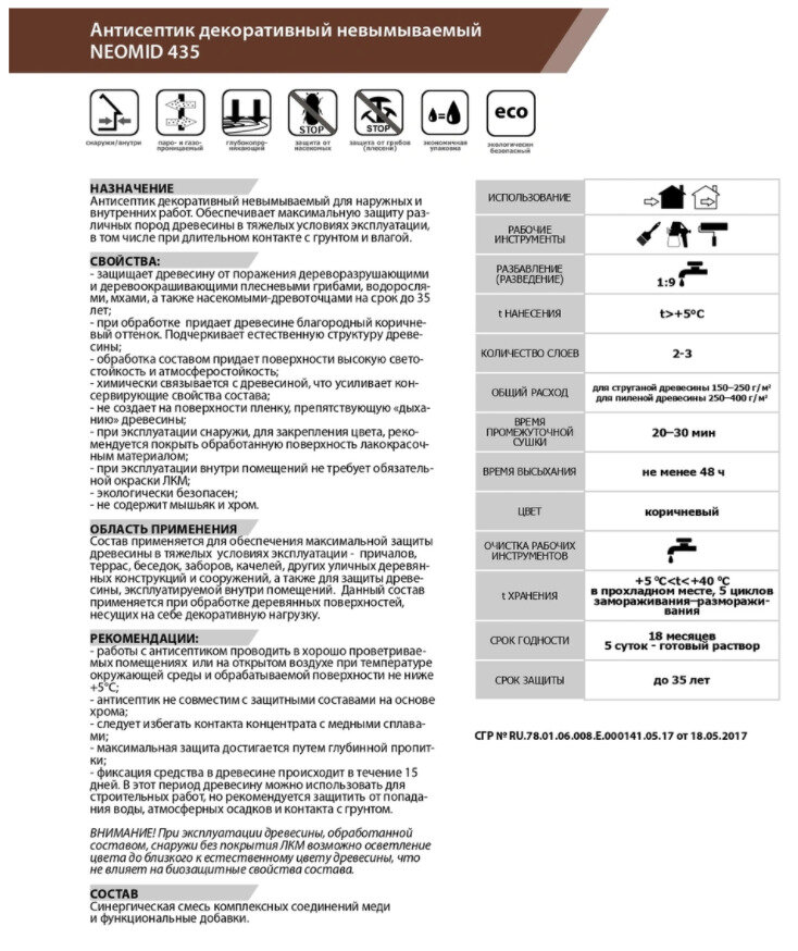Neomid 435 Eco Невымываемый Антисептик декоративный (коричневый, 1 л)