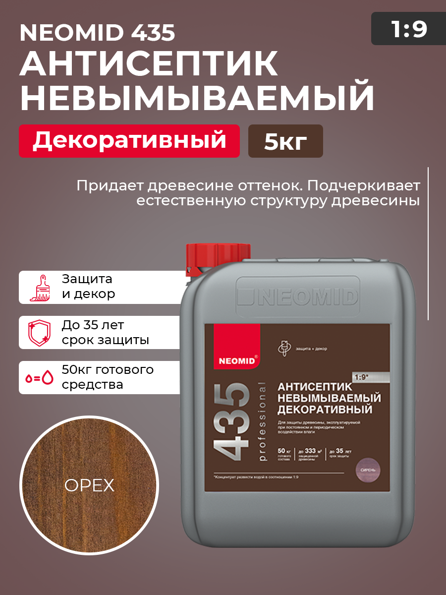 Neomid 435 Eco Невымываемый Антисептик декоративный (коричневый, 5 л)