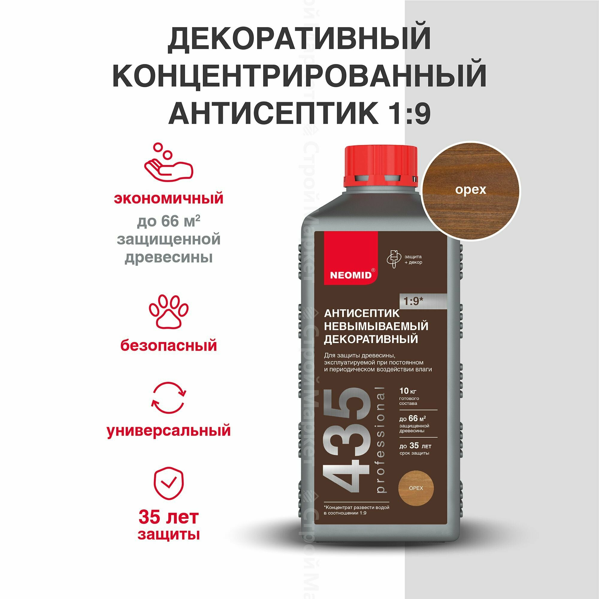 NEOMID 435 антисептик невымываемый декоративный, защита до 35 лет, концентрат 1:9, коричневый (1 л) (Неомид )