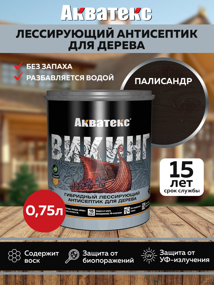 Ниже Вы можете прочитать отзывы на Гибридный лессирующий антисептик для дерева акватекс викинг (палисандр / 0.75л.), ознакомится с подробными характеристиками, посмотреть интересные обзоры и фотографии на Гибридный лессирующий антисептик для дерева акватекс викинг (палисандр / 0.75л.).