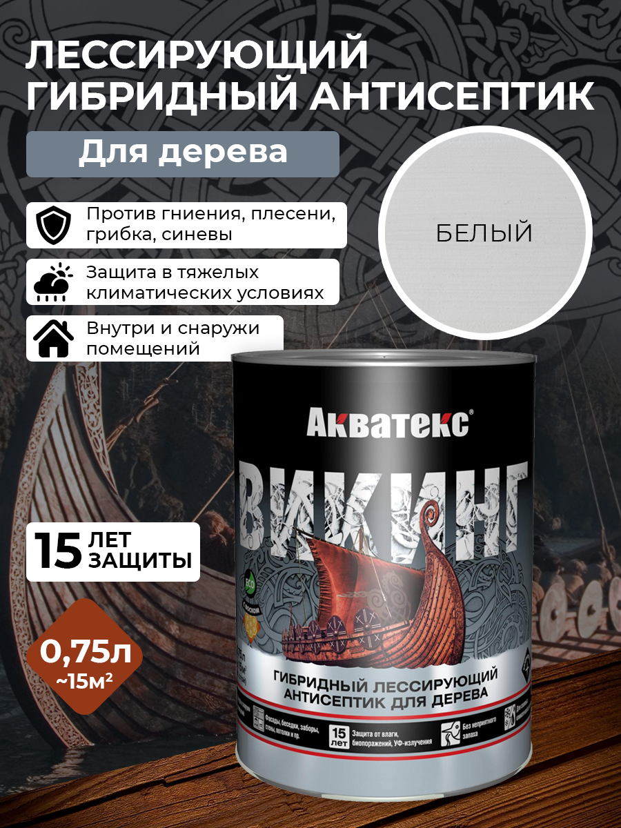 Купить Гибридный лессирующий антисептик для дерева акватекс викинг (белый / 0.75л.)