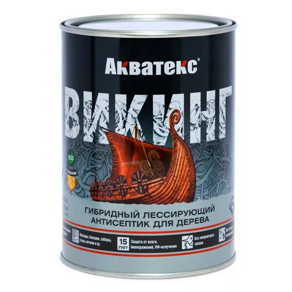 Гибридный лессирующий антисептик для дерева акватекс викинг (сосна / 9л.)