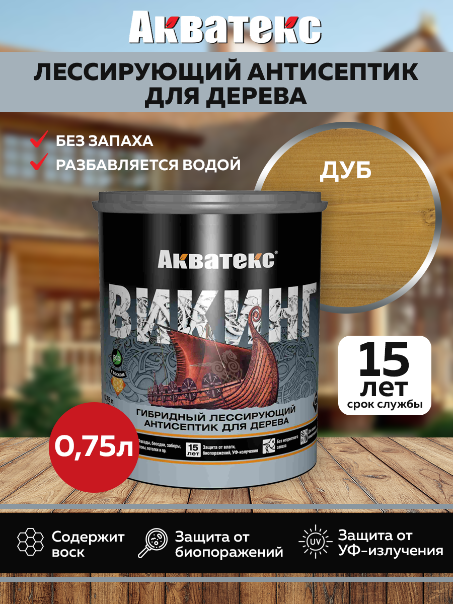 Купить Гибридный лессирующий антисептик для дерева акватекс викинг (дуб / 0.75л.)