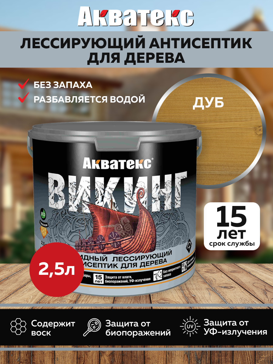Купить Гибридный лессирующий антисептик для дерева акватекс викинг (дуб / 2.5л.)