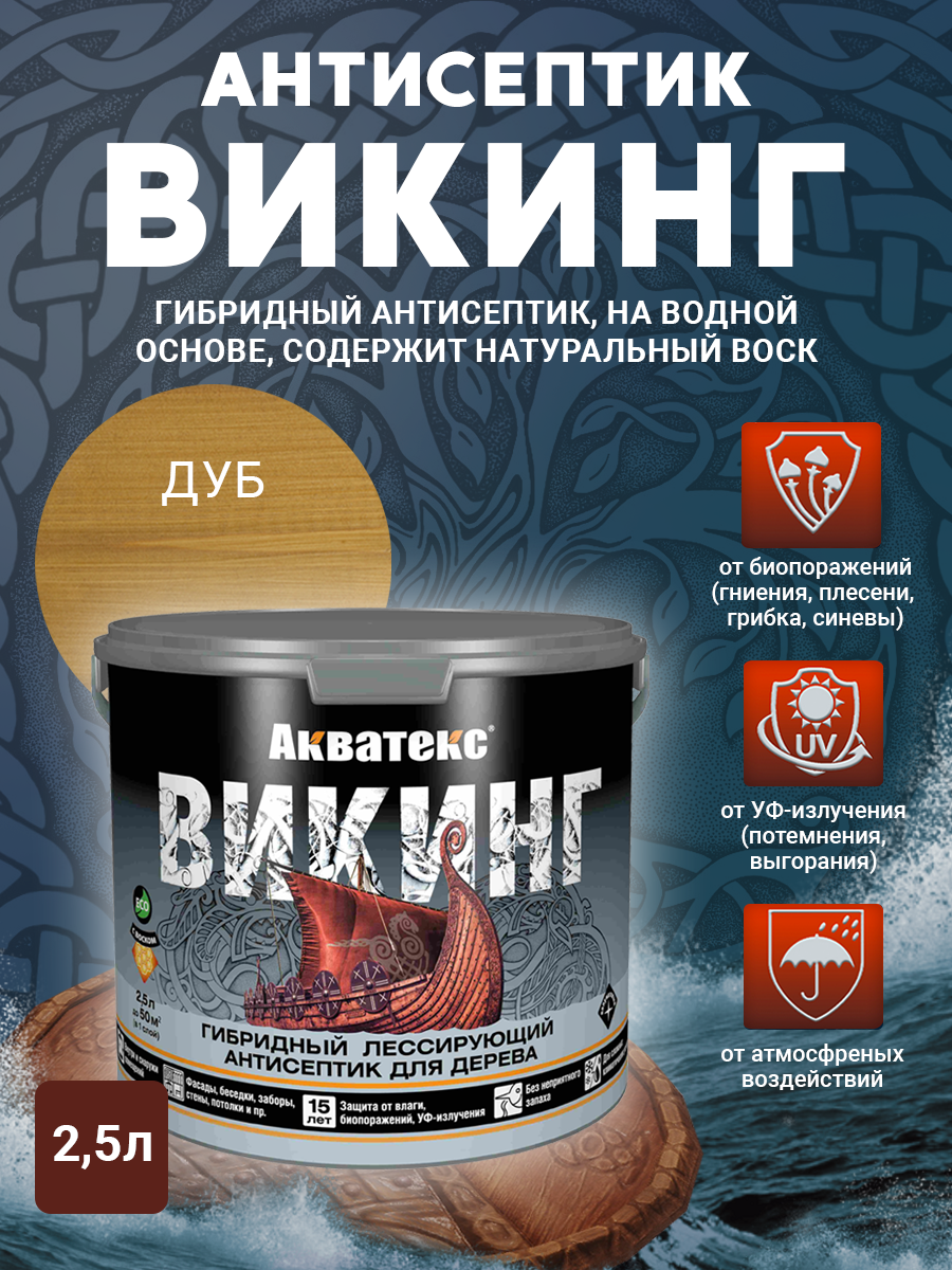 СохранитьГибридный лессирующий антисептик для дерева акватекс викинг (дуб / 2.5л.) интересное: