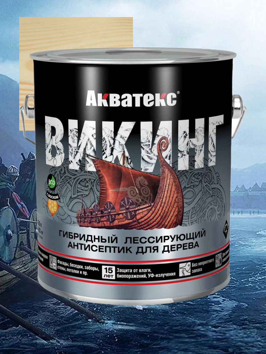 Гибридный лессирующий антисептик для дерева акватекс викинг (сосна / 9л.)