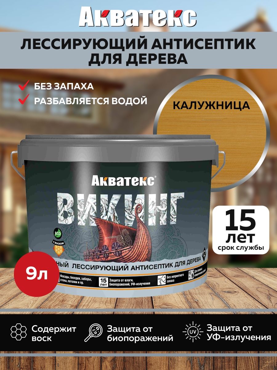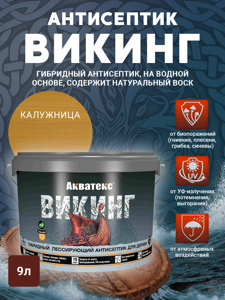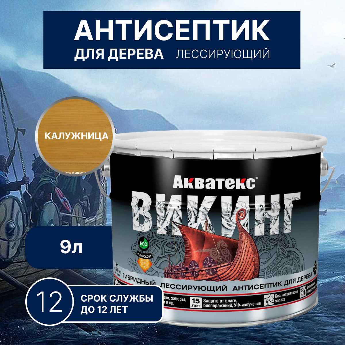 Антисептик лессирующий гибридный для дерева Акватекс Викинг полуматовый (9л) калужница