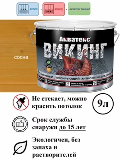 Купить Гибридный лессирующий антисептик для дерева акватекс викинг (сосна / 9л.)