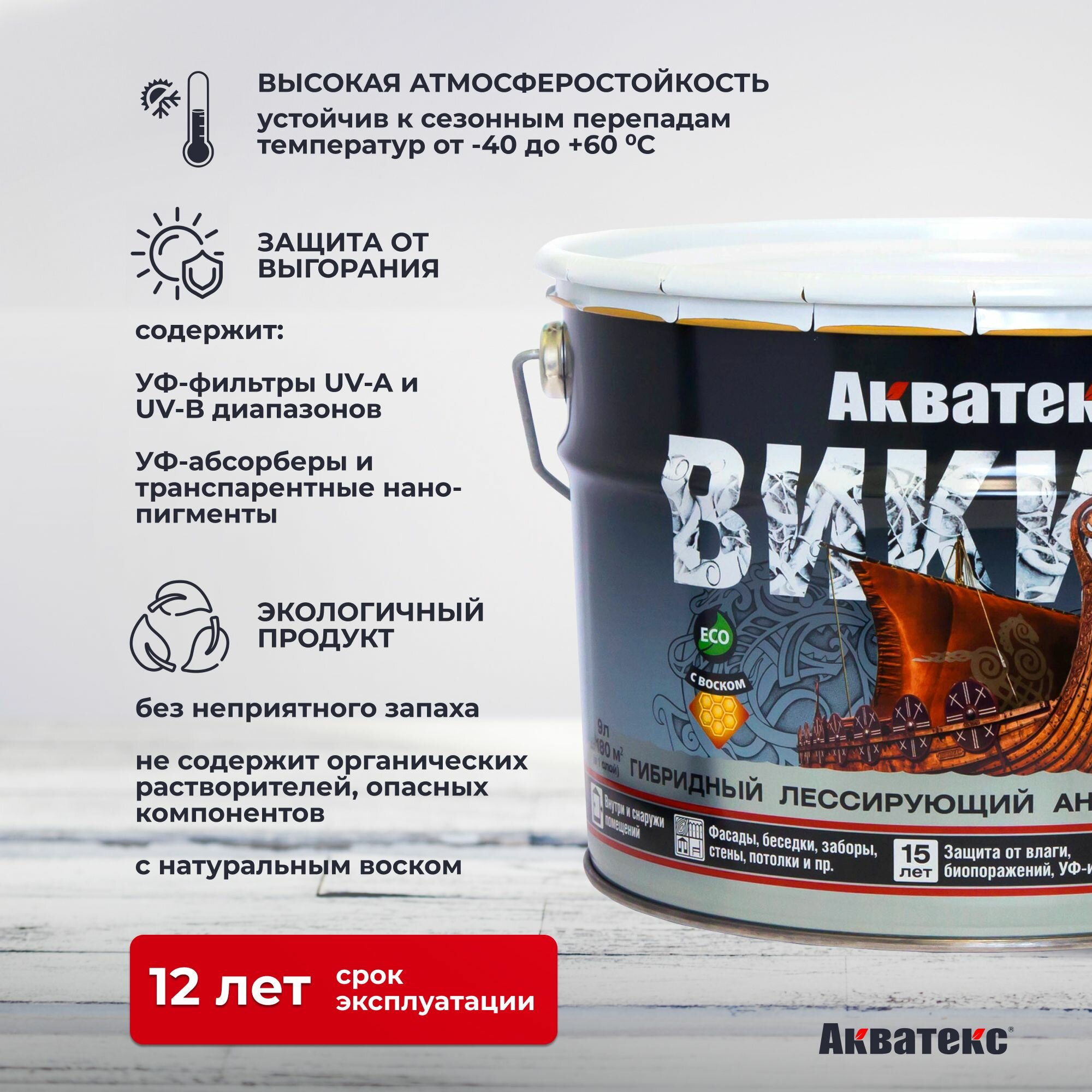 "Акватекс" викинг Гибридный лессирующий антисептик для дерева 9 л белый