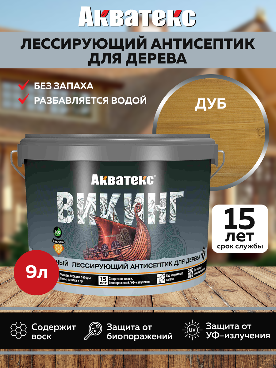 СохранитьГибридный лессирующий антисептик для дерева акватекс викинг (дуб / 9л.) интересное: