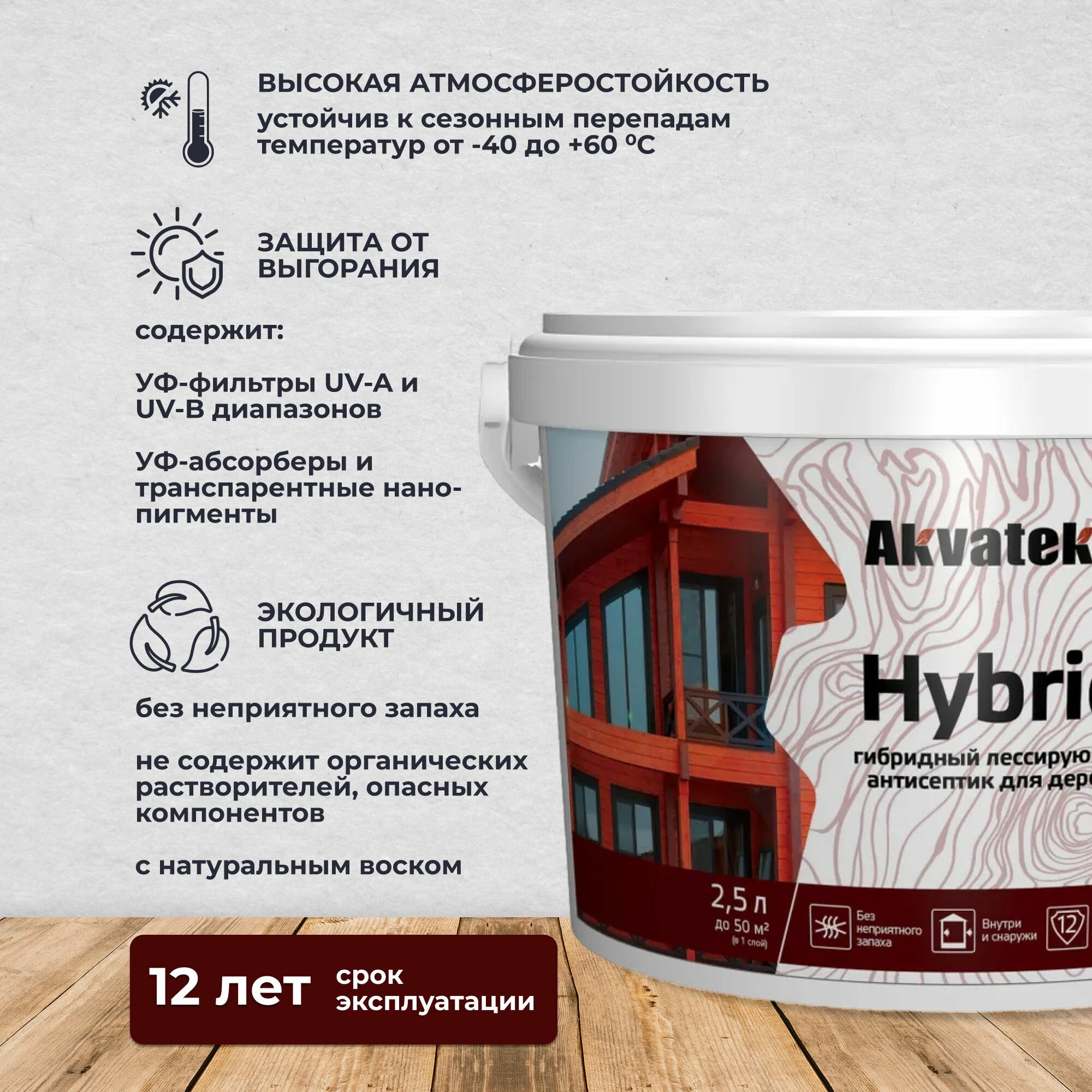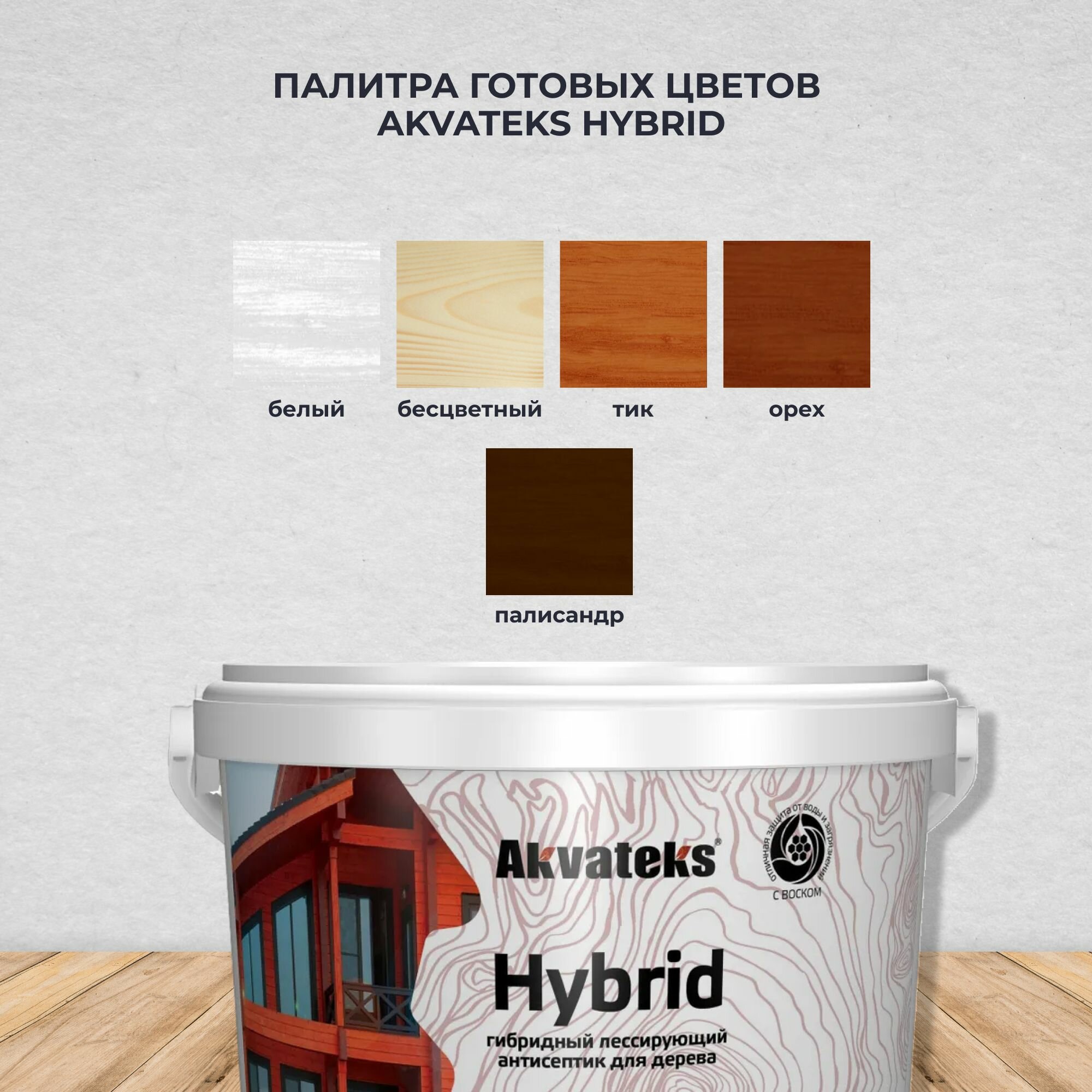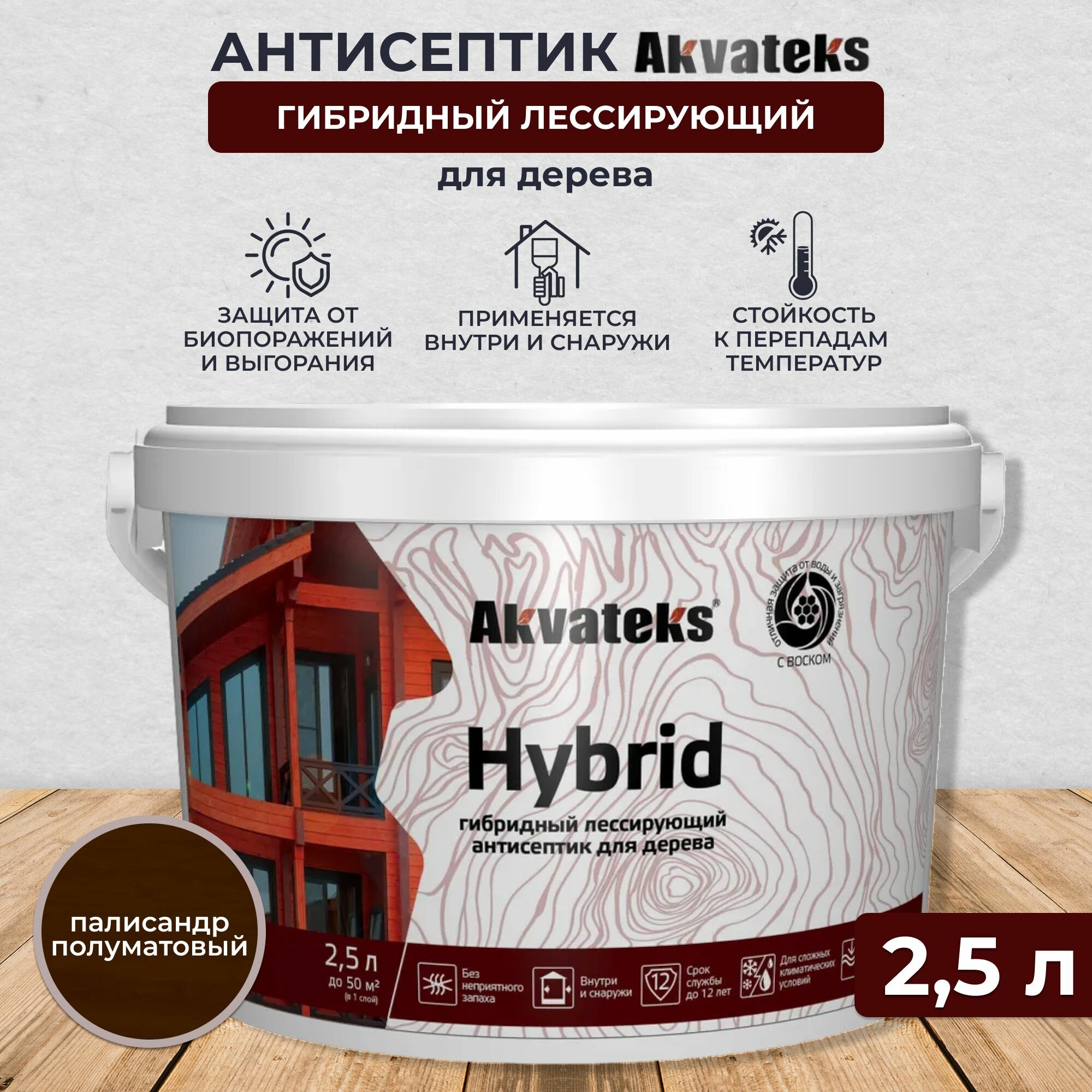 Антисептик для дерева Akvateks Hybrid, лессирующий, 2,5 л, палисандр