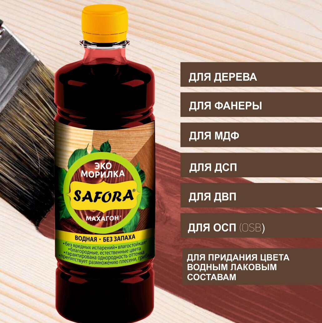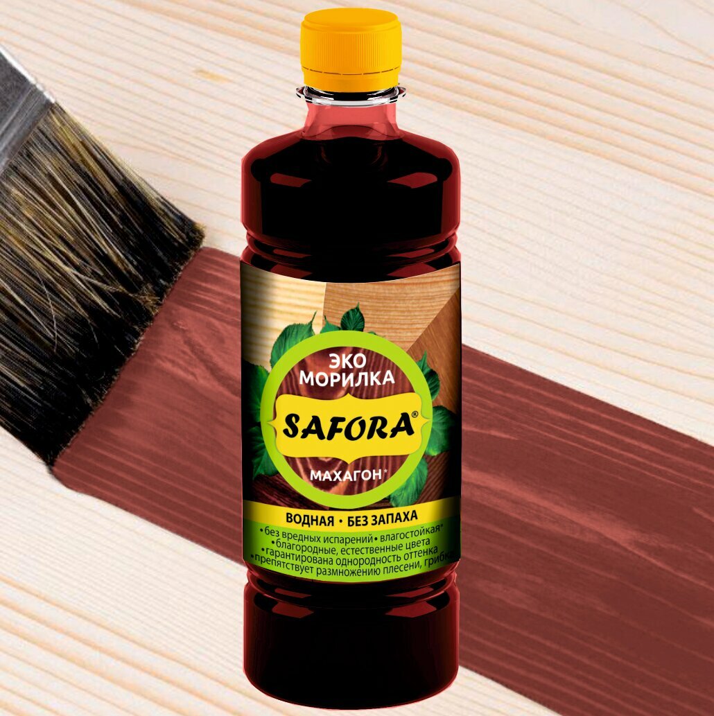Морилка для дерева водная SAFORA, цвет махагон, 500мл, без запаха интересное: