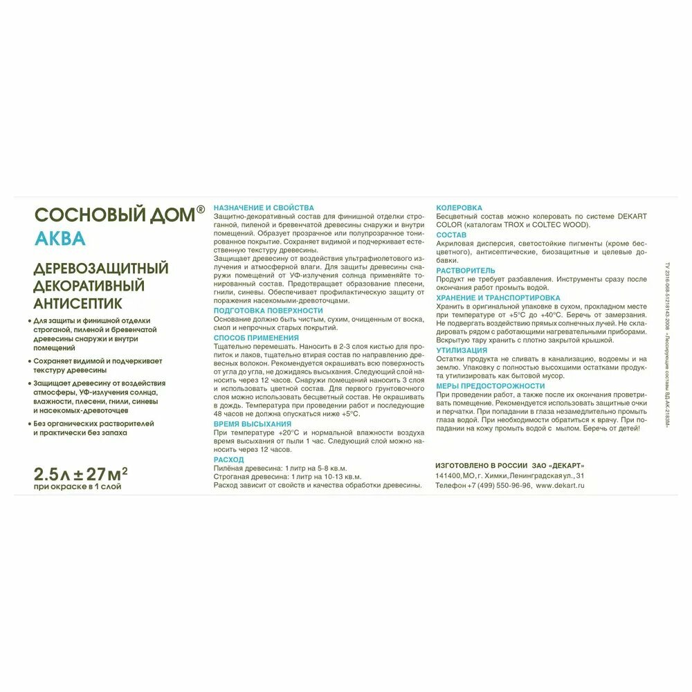 Купить Сосновый ДОМ аква Декоративный деревозащитный антисептик бесцветный (2,5л)