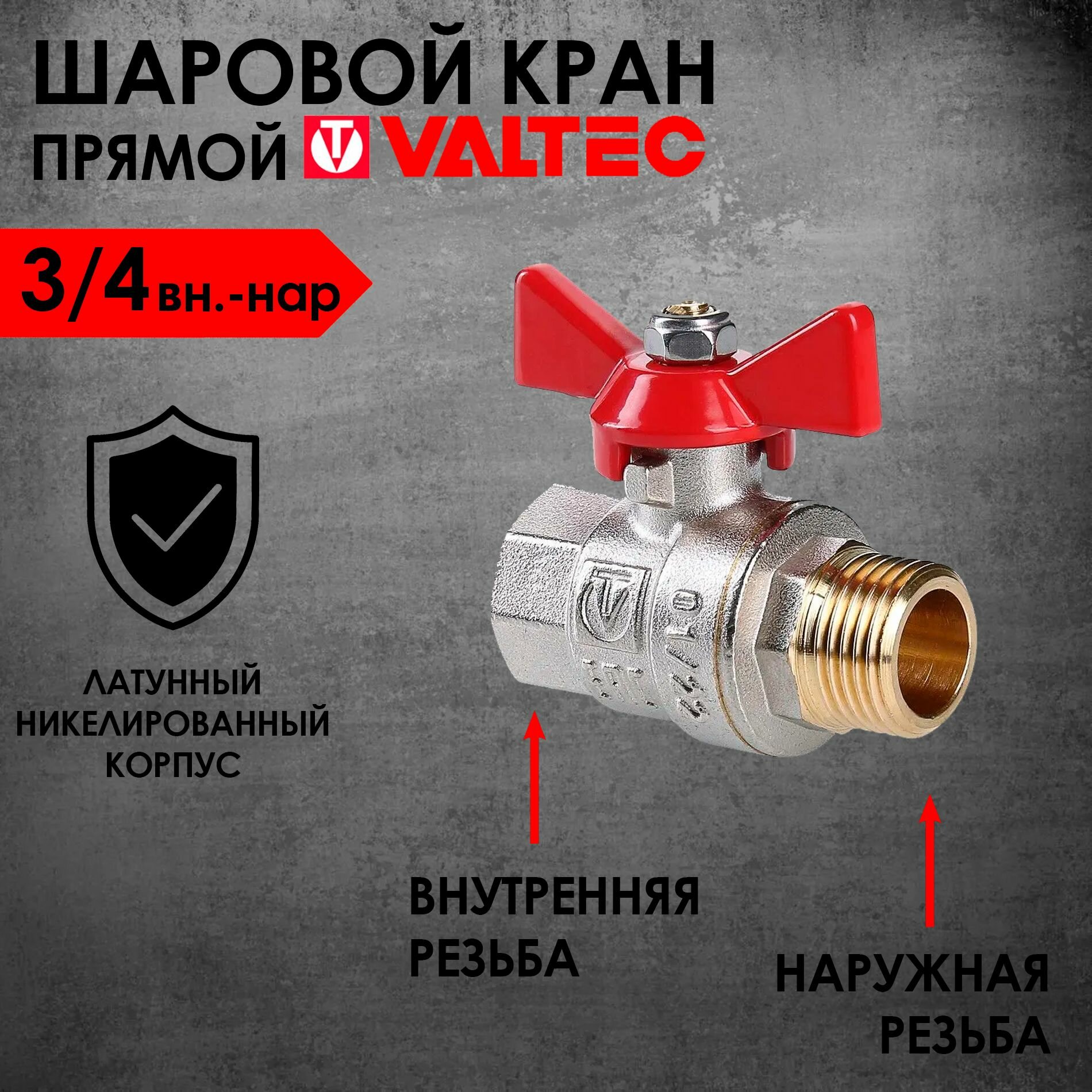 Кран шар. BASE, рукоятка бабочка 3/4" вн.-нар. Valtec VT.218. N.05