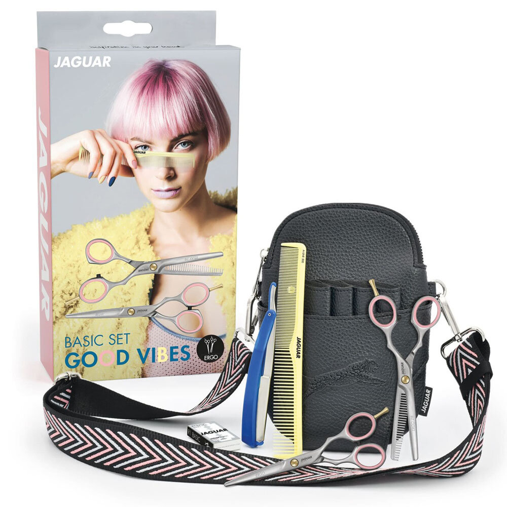 Парикмахерский набор JAGUAR SET ERGO: прямые ножницы 5,5", филировочные ножницы 5,5" (28 зубцов), чехол, расческа, бритва, лезвия 8388