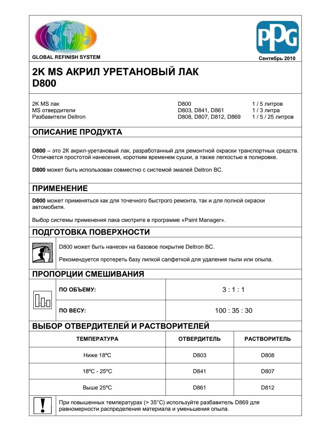 Ниже Вы можете прочитать отзывы на Лак PPG Deltron D800 1л + 802 0.5л, ознакомится с подробными характеристиками, посмотреть интересные обзоры и фотографии на Лак PPG Deltron D800 1л + 802 0.5л.