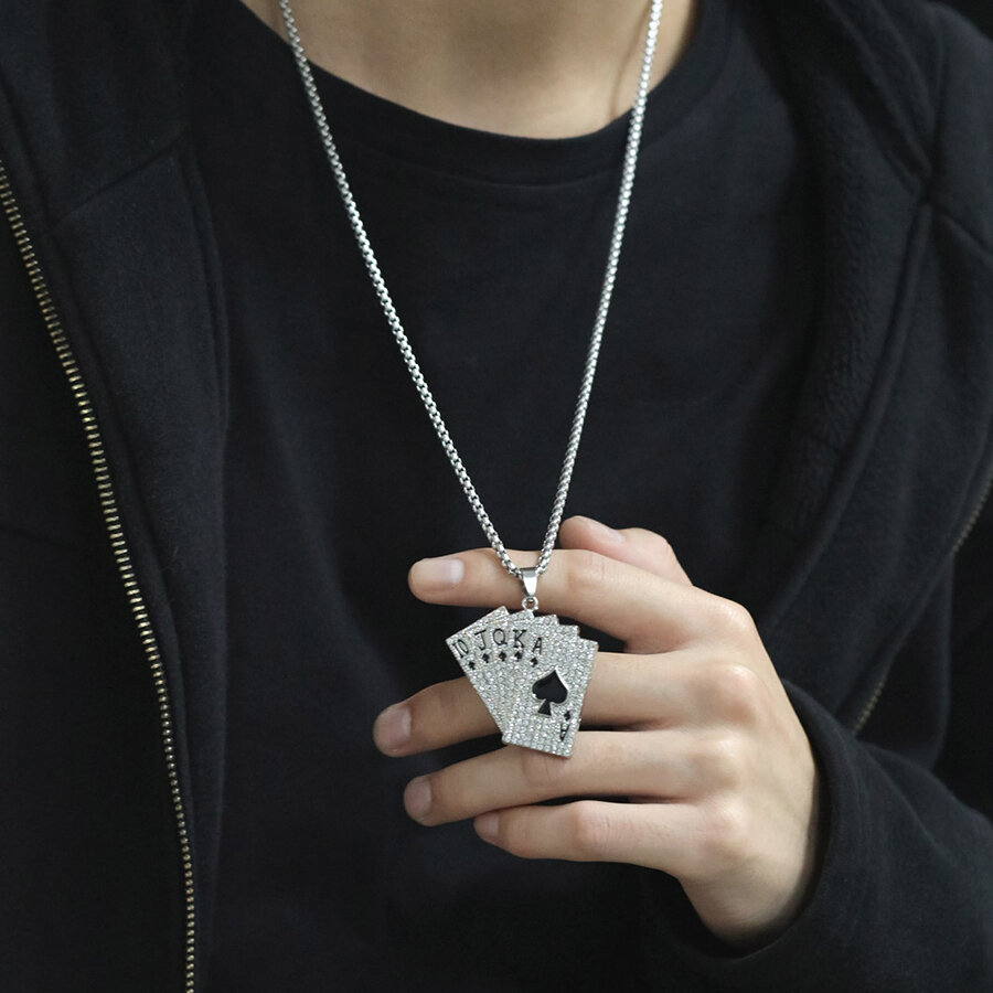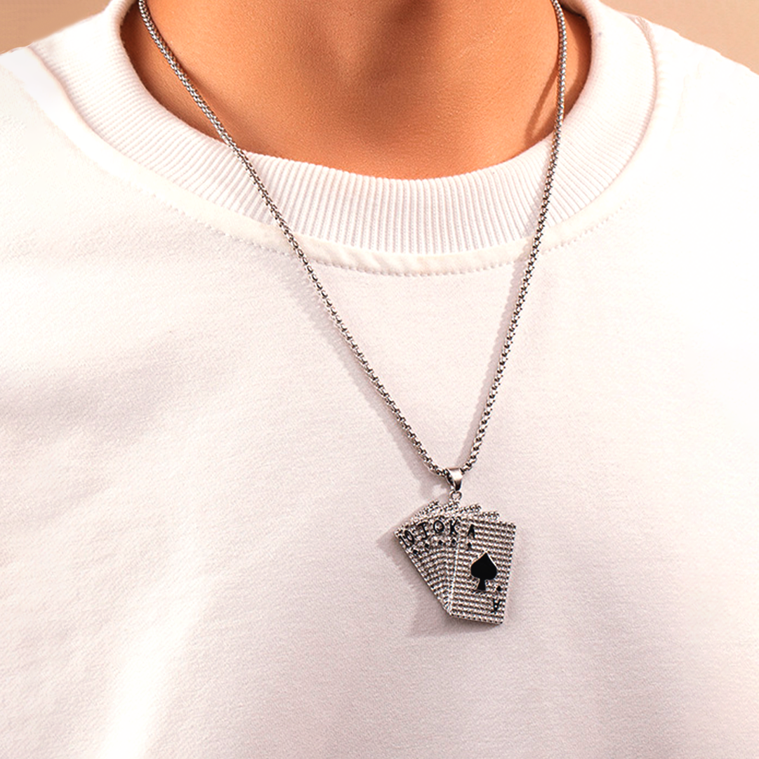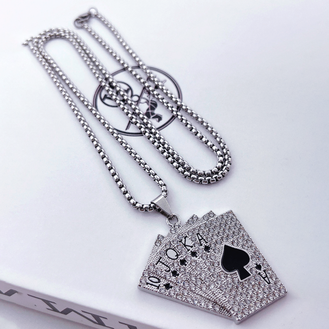 Купить Цепочка "Монинг" с подвеской-игральными картами, черная