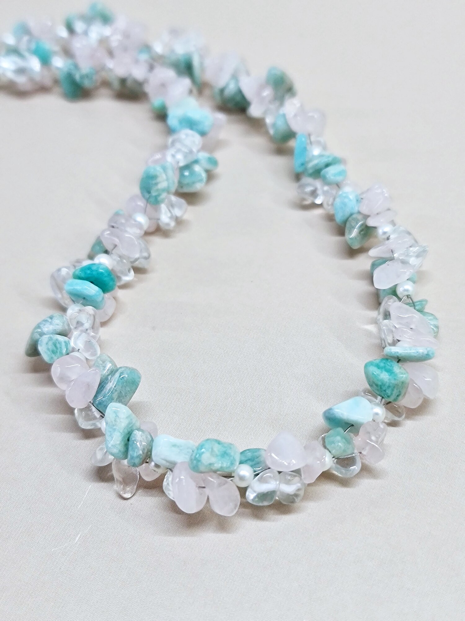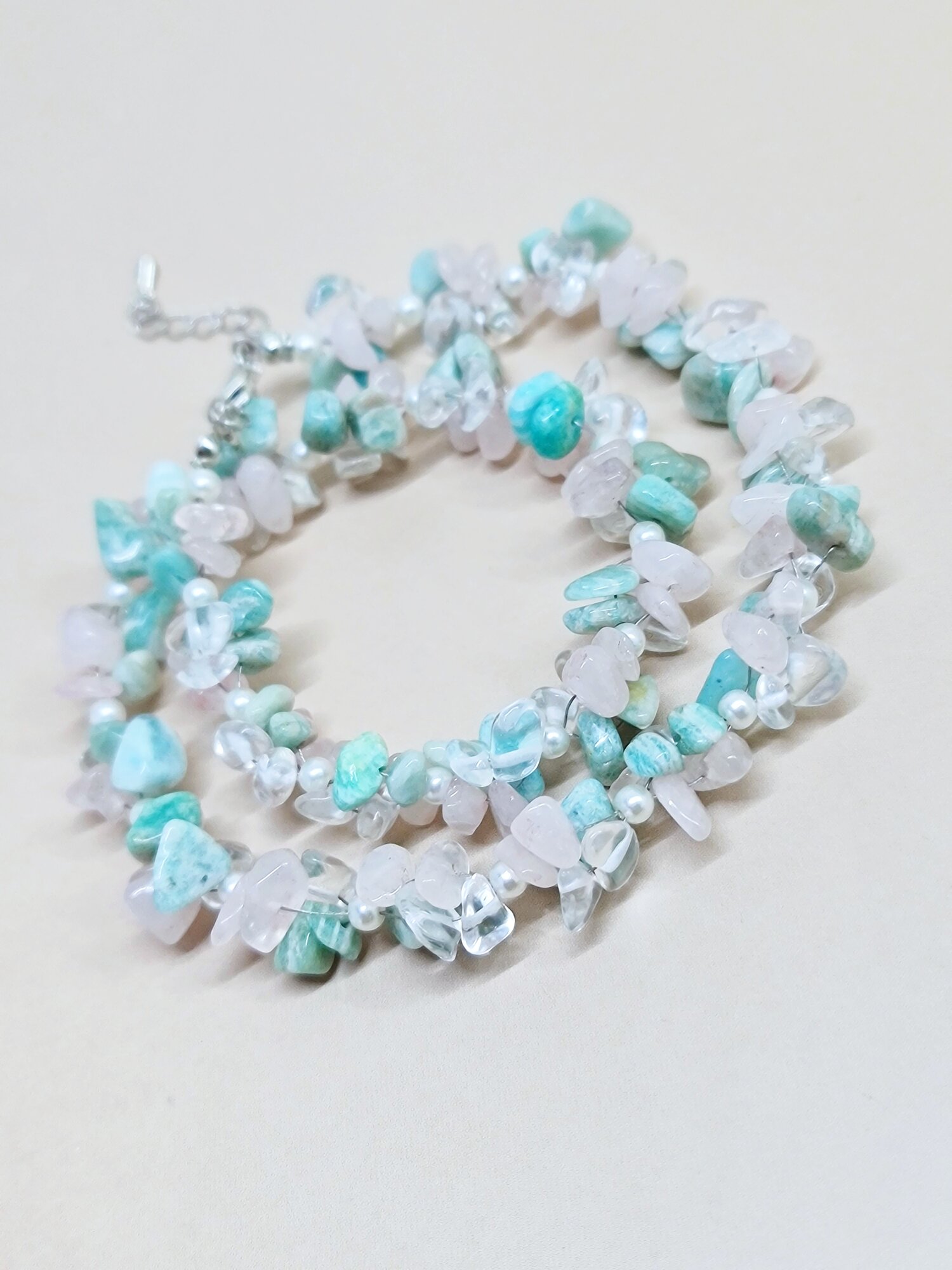 Купить Чокер ENJOY Spring River ожерелье бусы из розового кварца амазонита горного хрусталя ручная работа