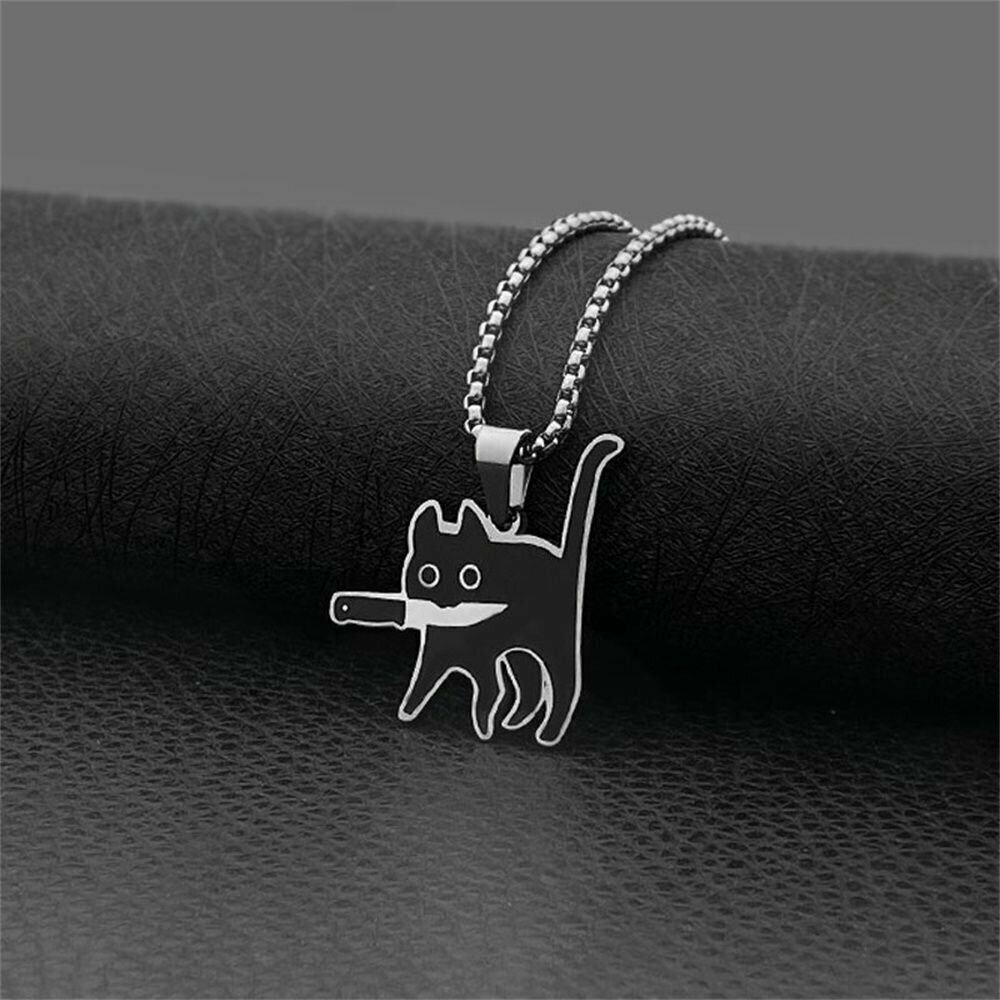 Кулон Черный кот с ножом из нержавеющей стали интересное: