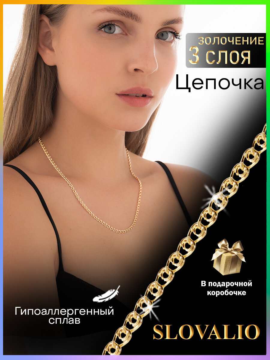 Купить Цепочка SLOVALIO, как золотая цепочка женская, или цепочка мужская, цепь на шею позолоченная из медицинского сплава, ювелирный, родирование Лав 50 см