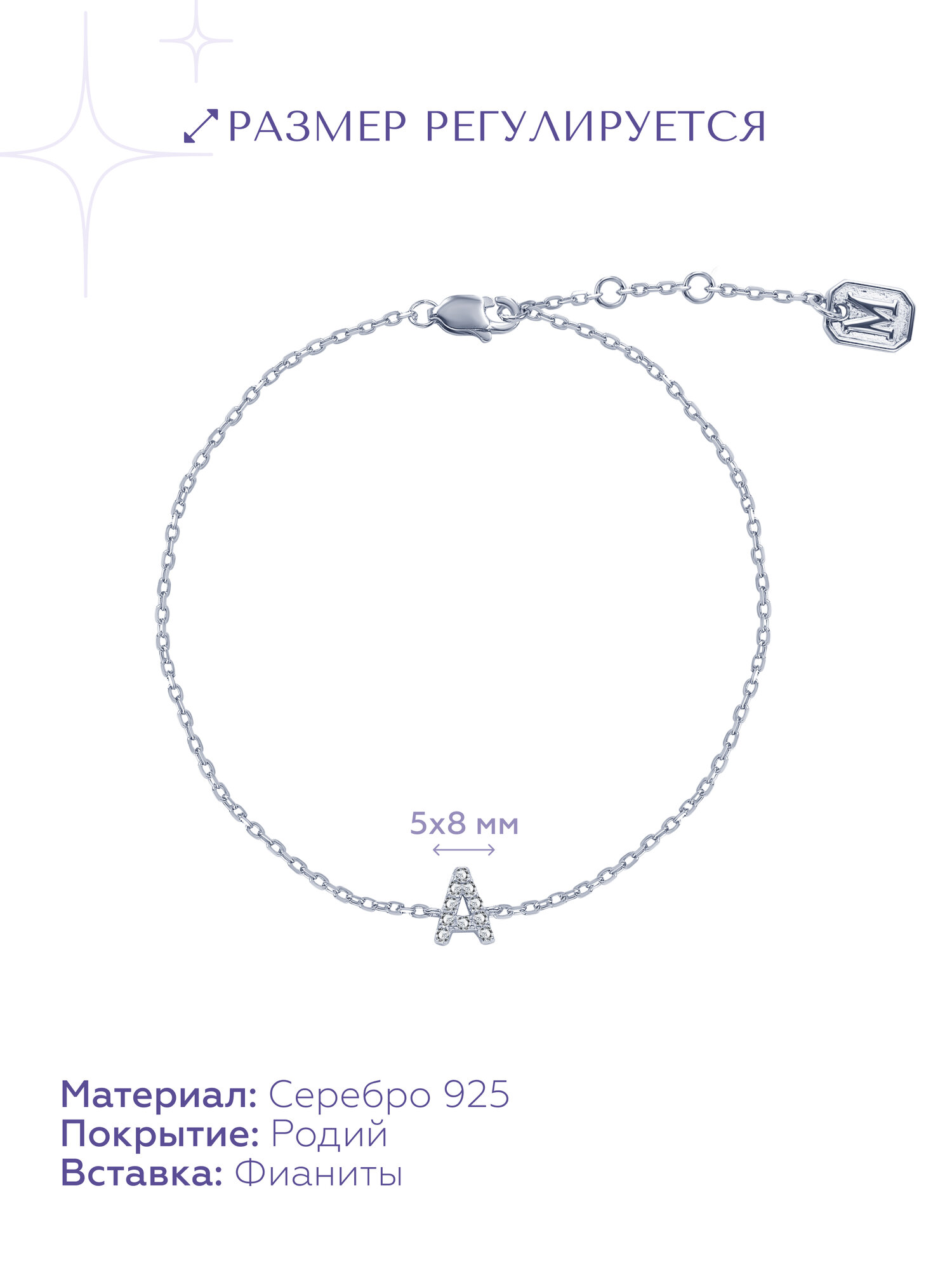 Браслет MIESTILO браслет женский серебро 925 с буквой R серебряный на руку