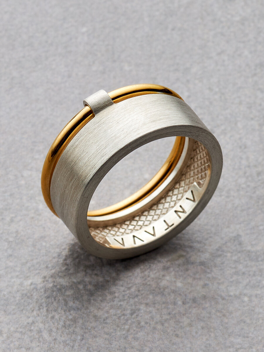 | Название модели | Двойное широкое серебряное кольцо с позолотой |