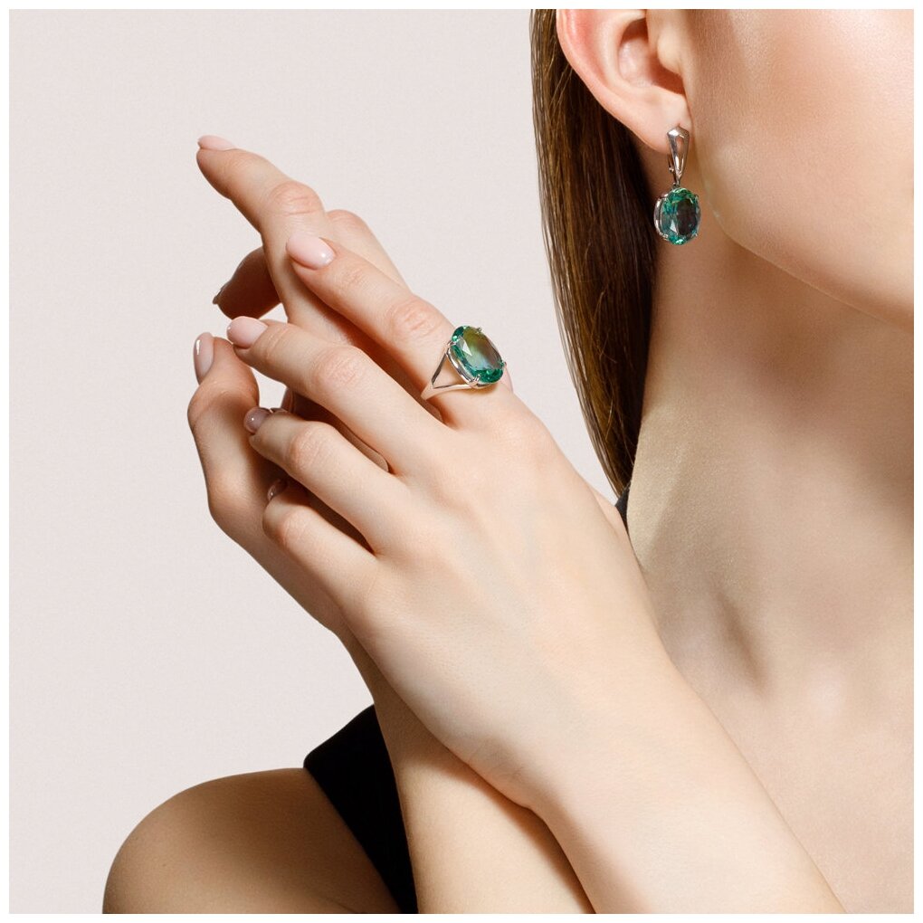 Перстень SOKOLOV, серебро, 925 проба, родирование, ситалл, размер 19, зелeный