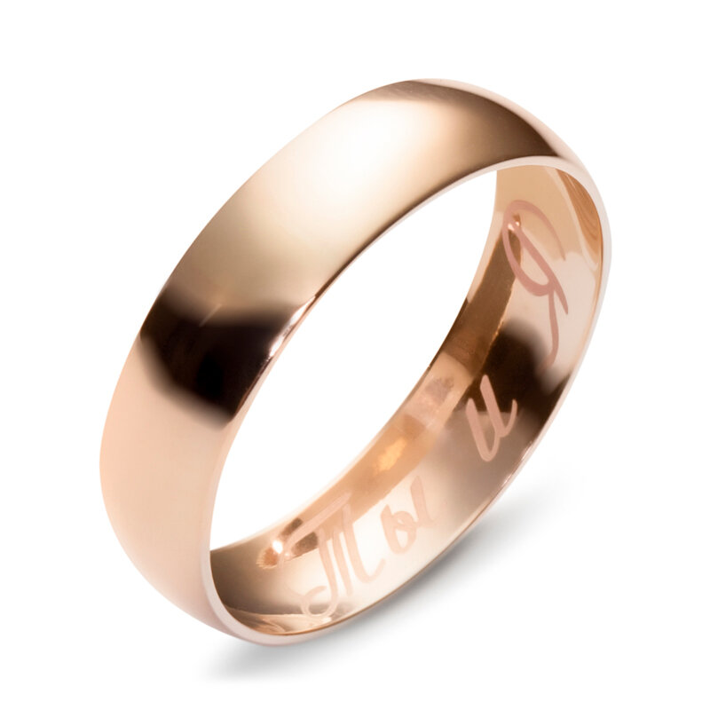 Купить Обручальное кольцо с гравировкой "Ты и Я" из красного золота 585 пробы 01О010165. Размер 20