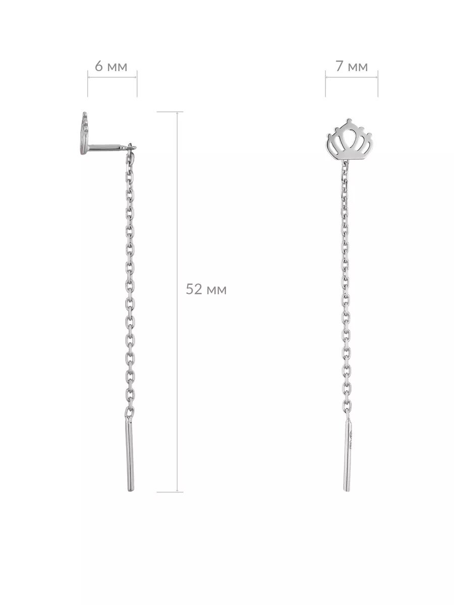 Серьги-протяжки серебряные 925 пробы в позолоте Корона, продевки длинные цепочки, ср.вес изделия 0,8 гр, арт. 2029970/9п Ювелир Карат