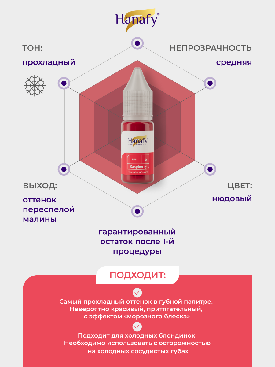 Купить Пигмент №6 Raspberry перманентный макияж татуаж губ от Hanafy 10мл