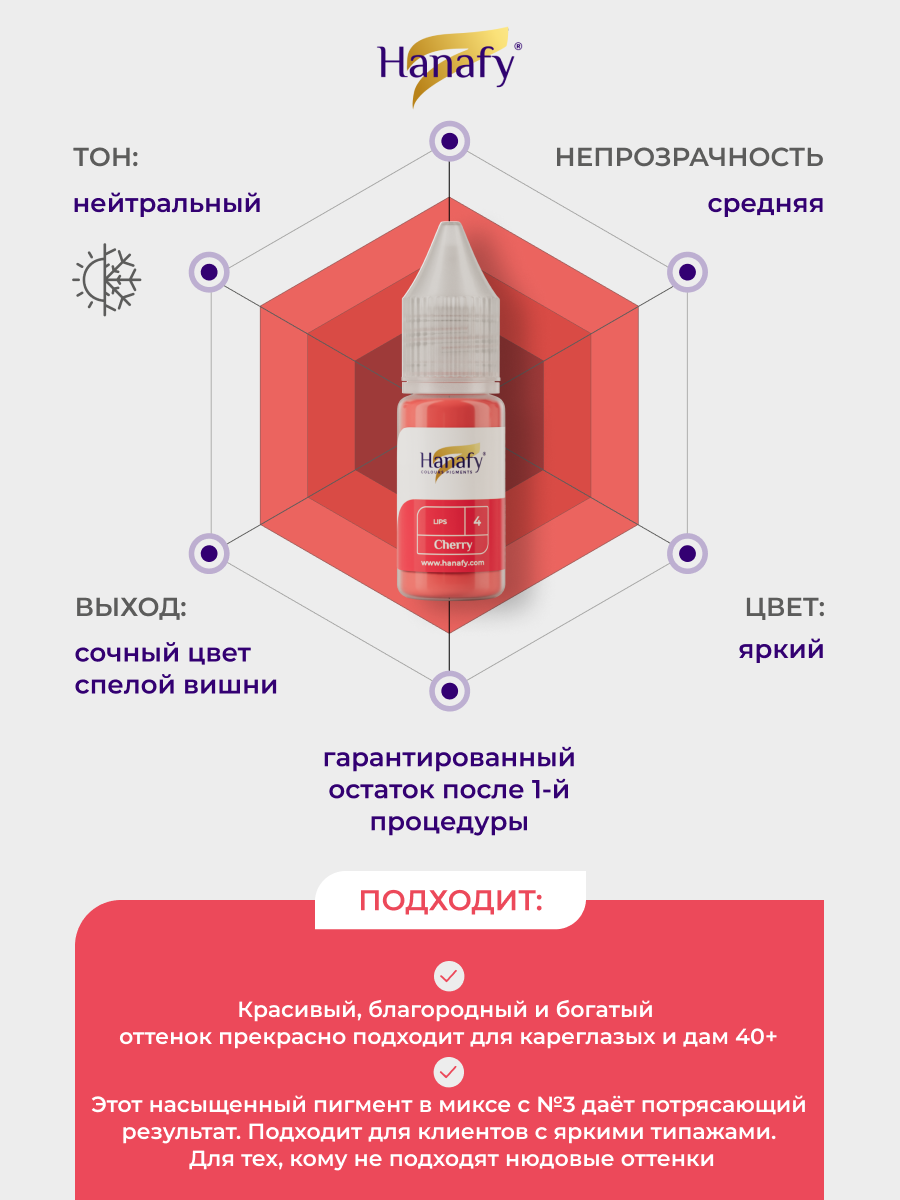 Купить Пигмент №4 перманентный макияж татуаж губ от Ханафи 10мл