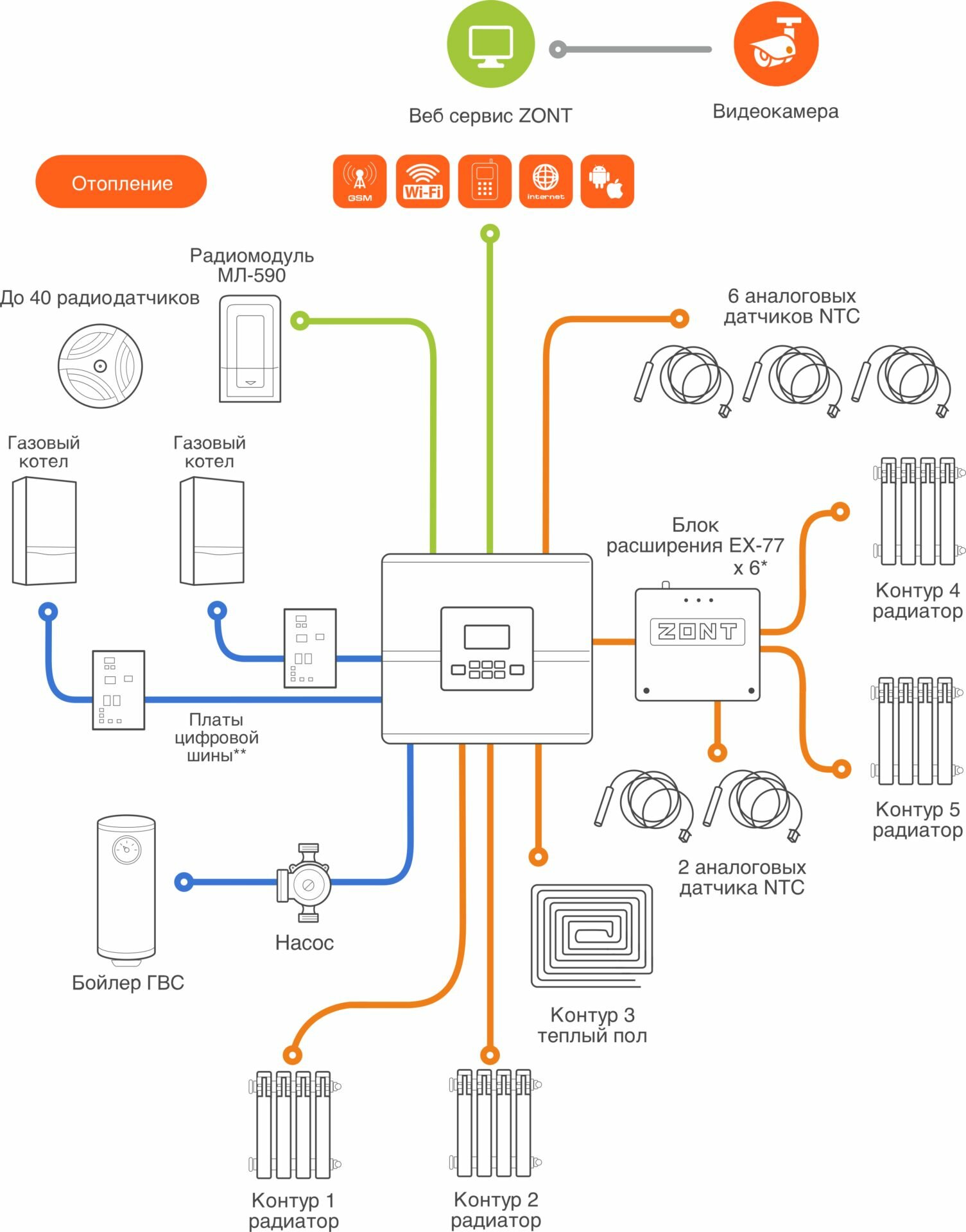 | Протокол связи | 1-Wire / BridgeNet / E-BUS / GPRS / GSM / K-Line / Navien / OpenTherm / RS-485 / USB / Wi-Fi / ZONT |