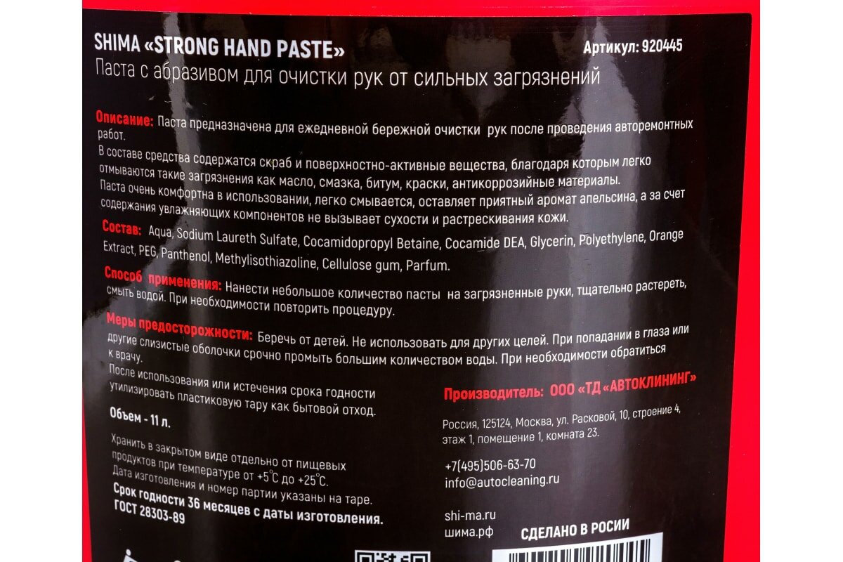 SHIMA Паста для очистки рук с абразивомDETAILER STRONG HAND PASTE 11 л, 4603740920445 интересное: