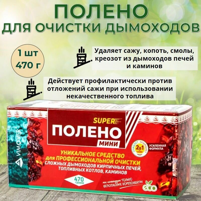 Полено мини SUPER 950гр. для прочистки дымоходов от сажи, копоти и смол Веселый трубочист
