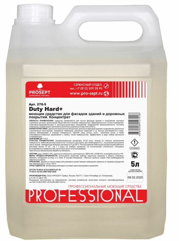 Моющее средство PROSEPT Duty Hard+ для фасадов и дорожных покрытий 5 литров интересное: