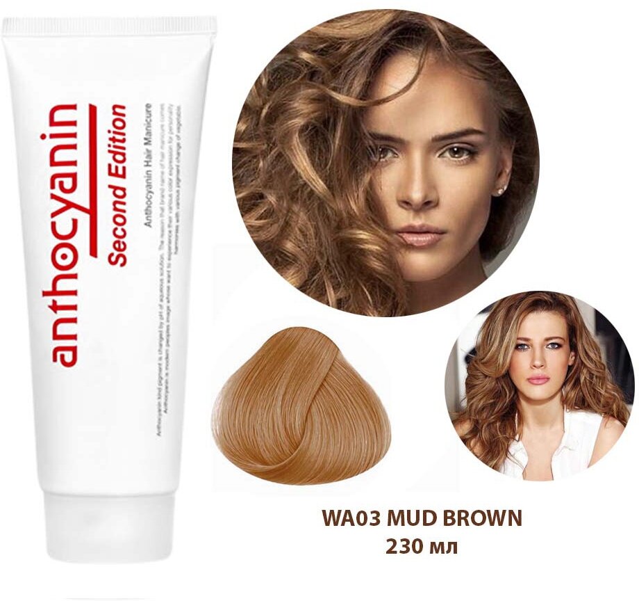 Anthocyanin Коричневая краска для волос WA03 Mud Brown 230 мл профессиональная без аммиака ламинирующая