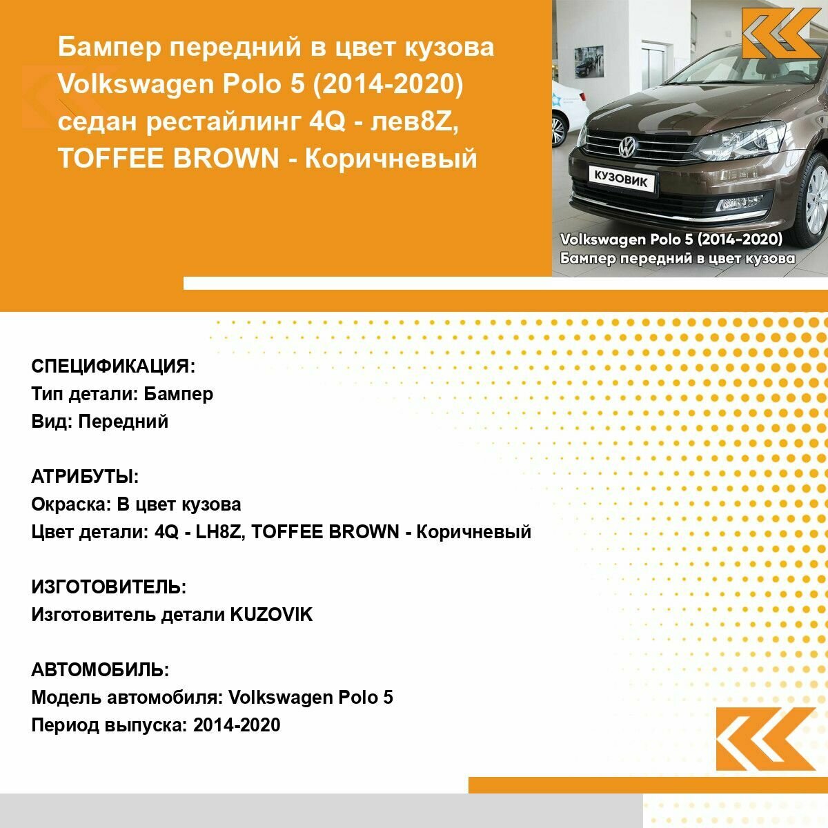 Бампер передний в цвет Volkswagen Polo 5 (2014-2020) седан рестайлинг 4Q - лев8Z, TOFFEE BROWN - Коричневый