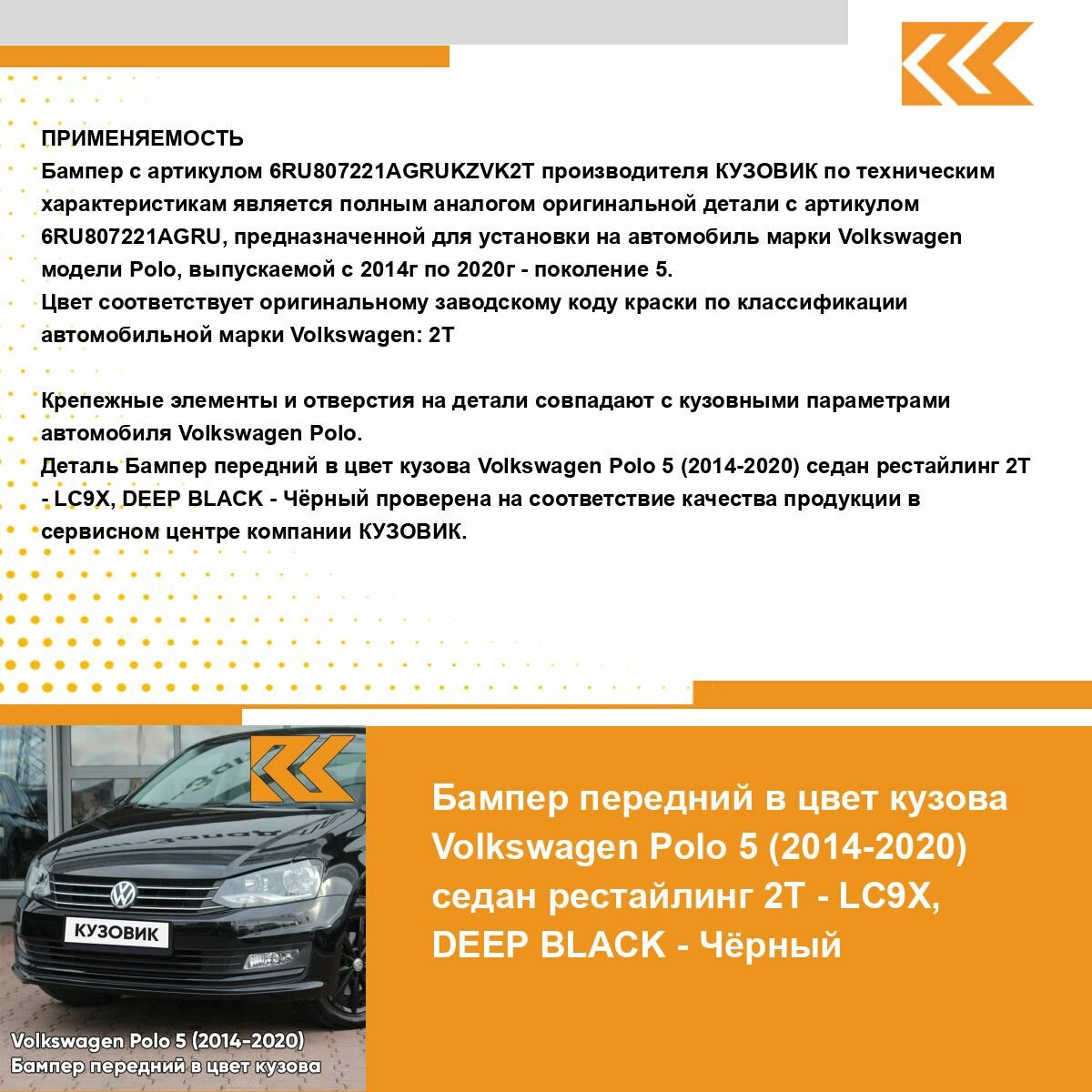 СохранитьБампер передний в цвет кузова для Фольксваген Поло 5 Volkswagen Polo 5 (2014-2020) седан рестайлинг 2T - LC9X,DEEP BLACK - Черный интересное: