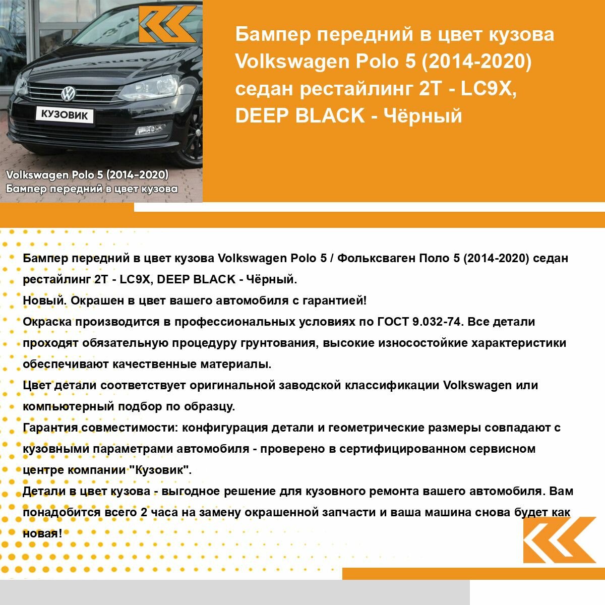 Бампер передний в цвет Volkswagen Polo 5 (2014-2020) седан рестайлинг 2T - LC9X, DEEP BLACK - Чёрный