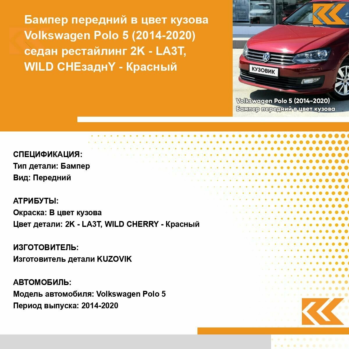 Купить Бампер передний в цвет кузова для Фольксваген Поло 5 Volkswagen Polo 5 (2014-2020) седан рестайлинг 2K - LA3T, WILD CHERRY - Красный