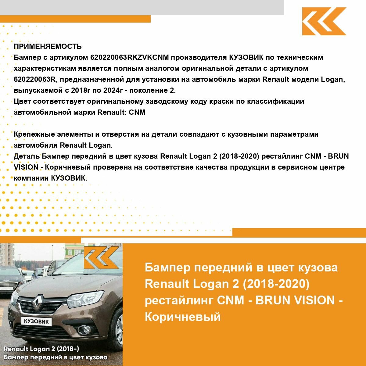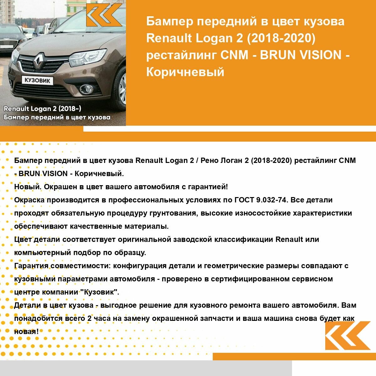 Ниже Вы можете прочитать отзывы на Бампер передний в цвет кузова для Рено Логан 2 Рено Сандеро 2 Renault Logan 2 (2018-2022) / Renault Sandero 2 (2018-2022) рестайлинг CNM - BRUN VISION - Коричневый, ознакомится с подробными характеристиками, посмотреть интересные обзоры и фотографии на Бампер передний в цвет кузова для Рено Логан 2 Рено Сандеро 2 Renault Logan 2 (2018-2022) / Renault Sandero 2 (2018-2022) рестайлинг CNM - BRUN VISION - Коричневый.