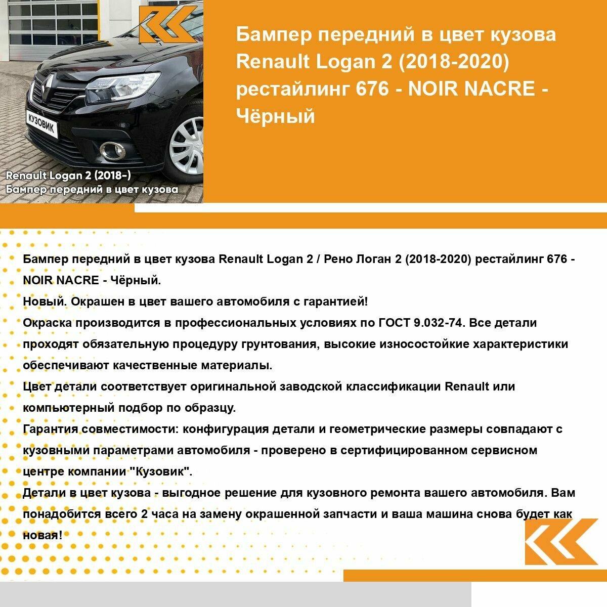 Бампер передний в цвет кузова для Рено Логан 2 Renault Logan 2 (2018-2022) / Рено Сандеро 2 Renault Sandero 2 (2018-2022) рестайлинг 676 - NOIR NACRE - Черный