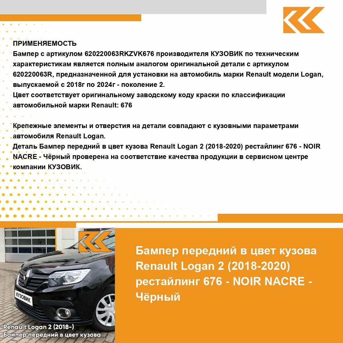 СохранитьБампер передний в цвет кузова для Рено Логан 2 Рено Сандеро 2 Renault Logan 2 (2018-2022) / Renault Sandero 2 (2018-2022) рестайлинг 676 - NOIR NACRE - Черный интересное: