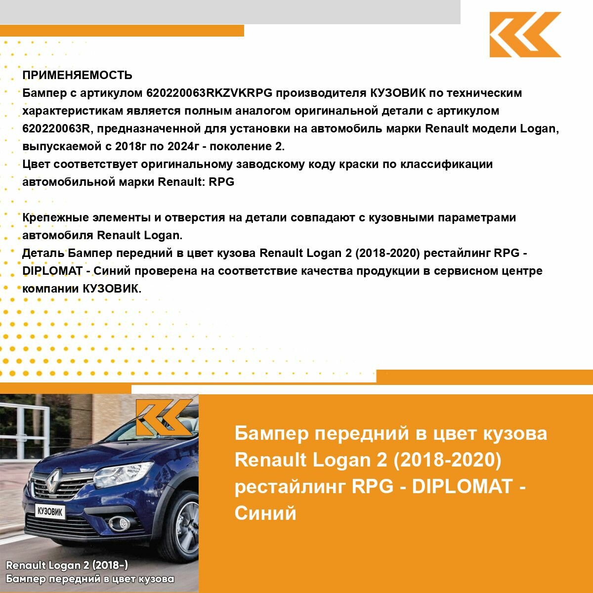 СохранитьБампер передний в цвет кузова для Рено Логан 2 Рено Сандеро 2 Renault Logan 2 (2018-2022) / Renault Sandero 2 (2018-2022) рестайлинг RPG - DIPLOMAT - Синий интересное: